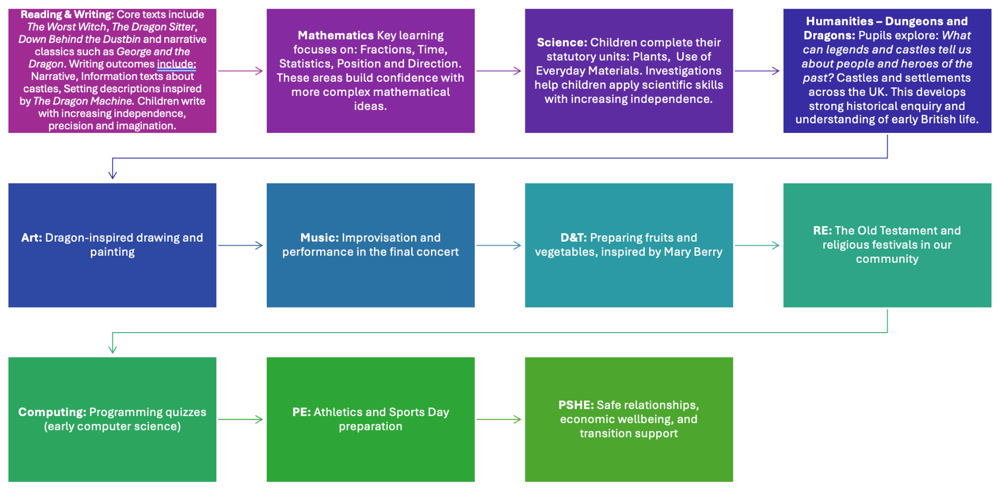 Summer immerses children in the magic of legends, castles, dragons and courageous heroes. This term blends creativity with historical enquiry, fostering excitement and ambition.