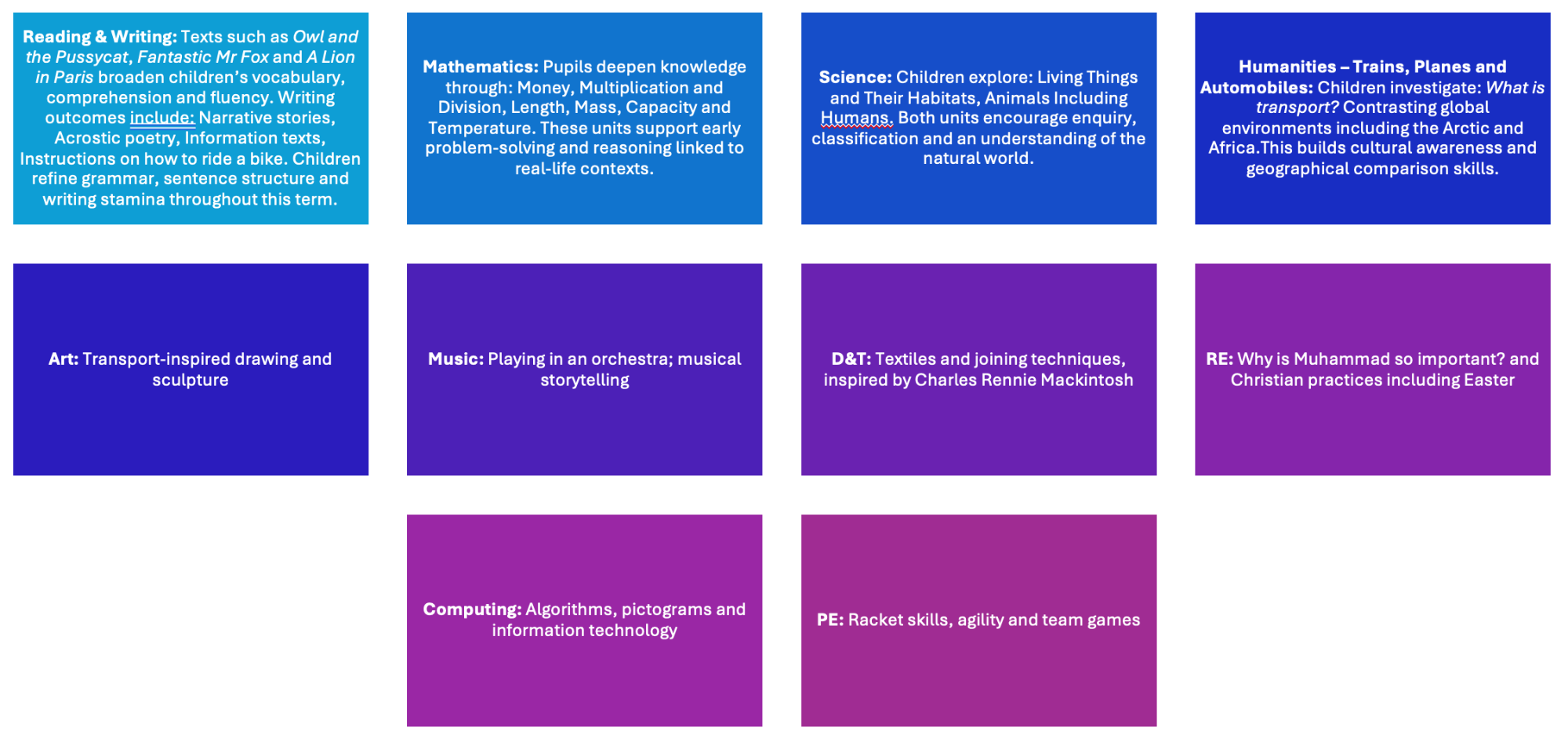 Below is an outline of the engaging and ambitious learning journey pupils experience across the year.